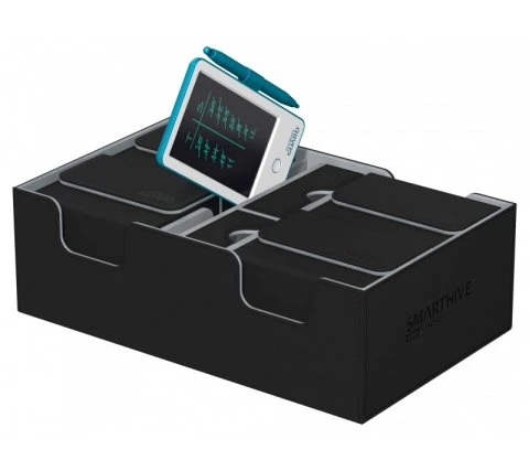 The Smarthive is an ingenious deck box that satisfies even the most demanding gamer. The box offers space for multiple deck boxes, has two trays for accessories and a special place for the Ultimate Guard Digital Life Pad. The exterior is made from XenoSkin to protect your cards in style. The lid is covered on the inside with velvety soft material and is completely removable for use as a play mat. Extra strong ZnapClaw magnets keep the box closed at all times for maximum protection.