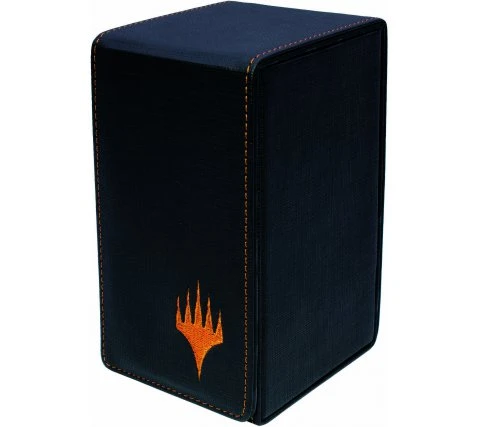 Protect your cards in style with this very sturdy Mythic Edition deck box with embroidered orange Planeswalker symbol. The lid is fully foldable from this deckbox and has several strong magnets for a secure closure. The inside has two notches for your thumbs so you can easily take your cards and provides maximum protection for your cards. On the inside you will also find a removable tray for dice and other small accessories.